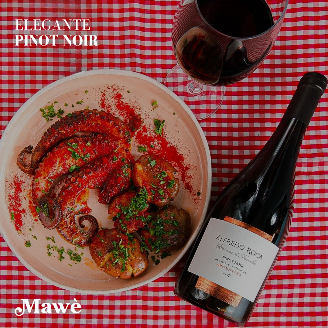 La sutileza del color del Pinot Noir es solo una muestra de su elegancia general. Es un vino que se deleita en la delicadeza, lo que lo convierte en la elección perfecta para aqu